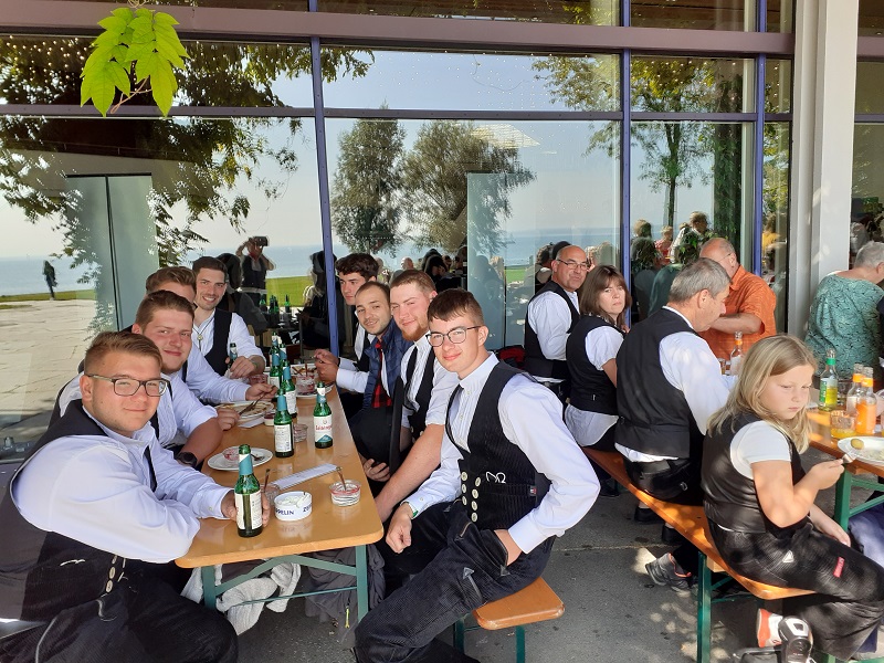 Der Landesverband Holzbau Baden-Württemberg hat zum Landesholzbautag nach Friedrichshafen am 24. und 25. September 2021 eingeladen. Die Einladung nahmen wir als Gelegenheit endlich wieder eine gemeinsame Veranstaltung mit dem gesamten Betrieb zu besuchen. Mit dem Bus fuhren wir bis Meersburg um dort auf ein Linienschiff nach Friedrichshafen umzusteigen. Standesgemäß liefen wir mit Zimmermannskluft in Friedrichshafen ein um dort an der Veranstaltung auf dem Buchhornplatz mit Ansprachen des neuen Verbandspräsidenten Gerd Renz und der neuen Bauministerin von BW Nicole Razavi teilzunehmen. Dazu scheinte die Sonne vom blauem Himmel.